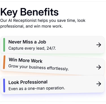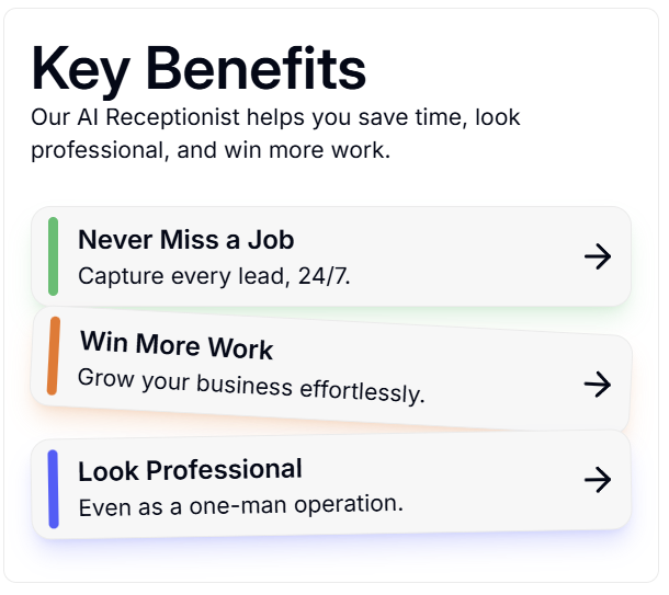 Your AI receptionist handles calls 24/7, captures crucial job details, and sends them directly to your phone. Simple, smart, Instant and effective.